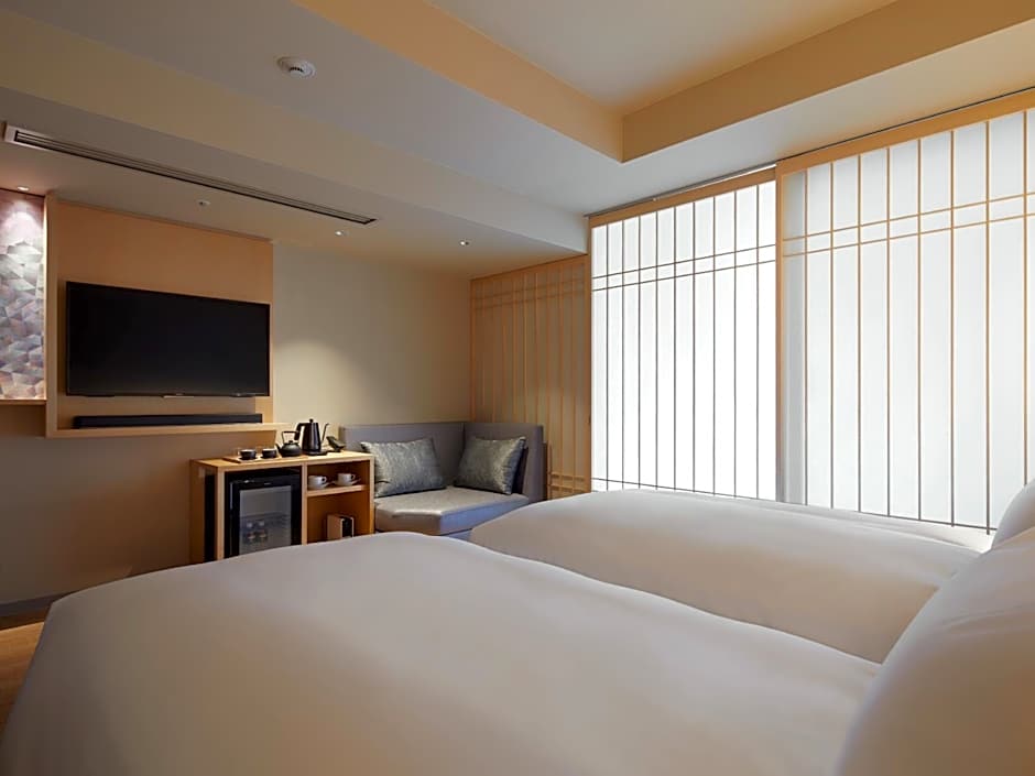 The twin room includes a private bathroom, well-fitted with a bath, a shower, a bidet, a hairdryer and slippers. The twin room offers air conditioning, a wardrobe, a safe deposit box, an electric kettle and a flat-screen TV with streaming services.